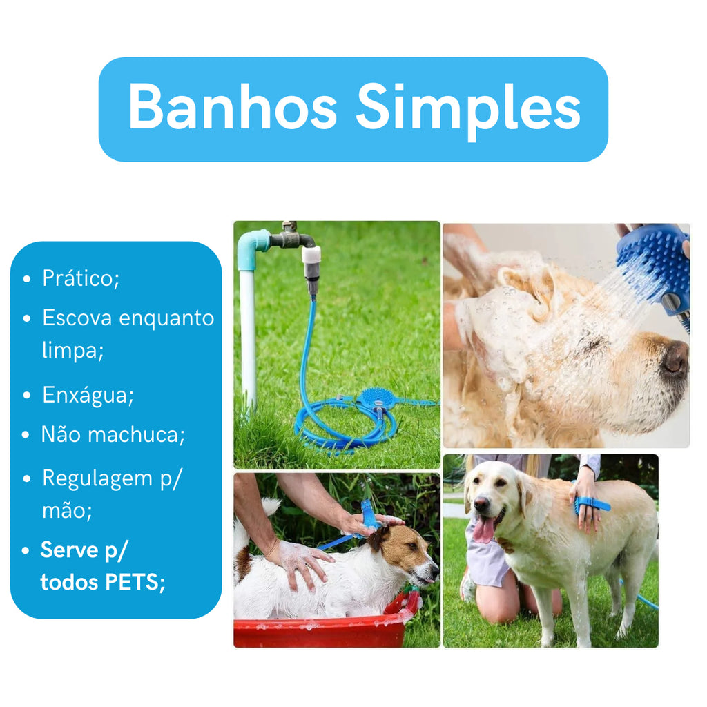 A Mangueira Banho Escova foi criada para simplificar sua vida e tornar o banho do seu pet mais rápido, fácil e agradável. Esqueça as dificuldades de segurar a mangueira, a escova e o sabão ao mesmo tempo. Com este acessório inovador, você tem a solução completa para a higiene do seu amigo de quatro patas.