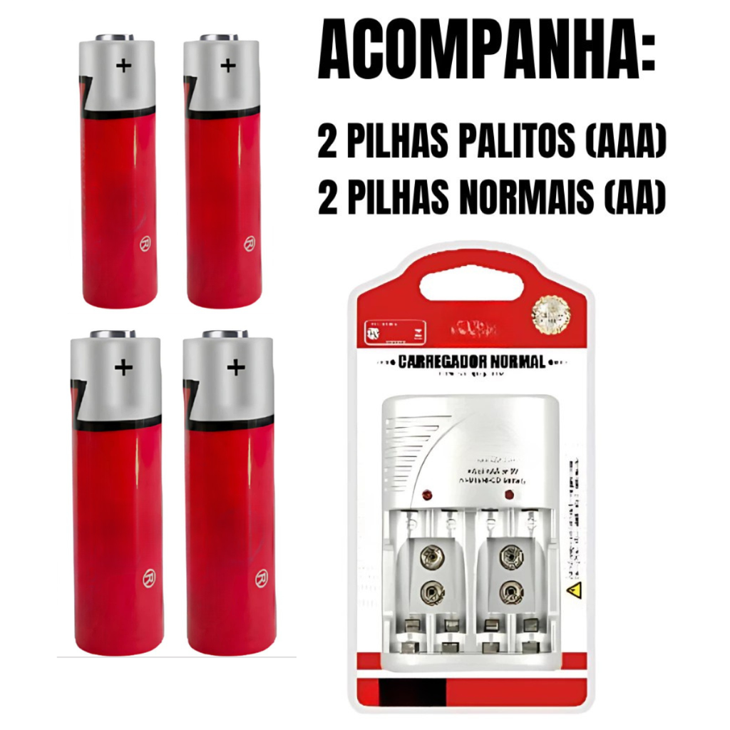- 4 pilhas AA recarregáveis de 2600mAh.